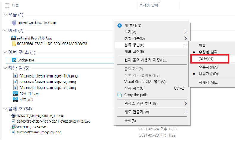 [윈도우10] 다운로드 폴더 날짜별 분류 없애기